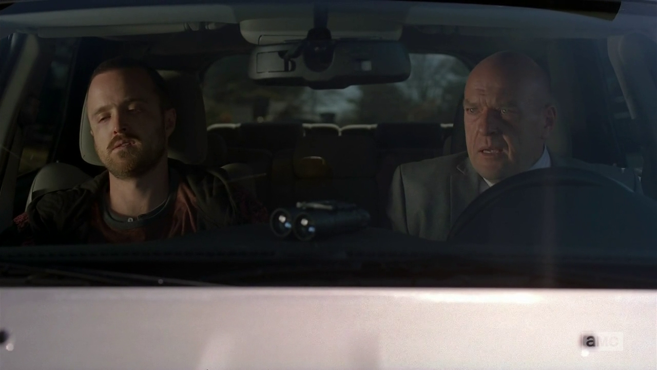 Now, onto the bit we were waiting for — Jesse’s about to drop a match, setting the house alight and in bursts Hank. He’s been following Jesse since he left Saul’s. After some talking down (or, really, just a further breakdown,) Jesse’s willing to cooperate this time, and records a tape going over everything he and Walt have done.